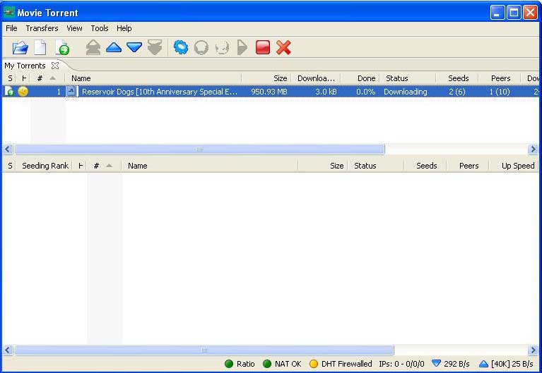 Movie Torrent is another peer to peer client that basically allows users to download torrent files to their computers. The program has a basic interface offering things like any other client for torrents, like uTorrent and BitComet. Although it offers a simple interface users that never were confronted with torrents before might get a little dizzy.