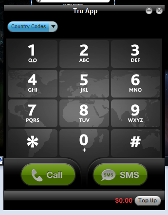 - The Dialpad allows you to call any mobile or landline number. International calling codes for each country are also provided thus making it all the more easy for the user to make calls to landline or mobiles. You can also send SMSs to mobiles all over the world provided your cell phone number is validated by Tru. In order to make these calls or to send SMS, you need to buy credit. The call rates and SMS rates are nevertheless cheap.