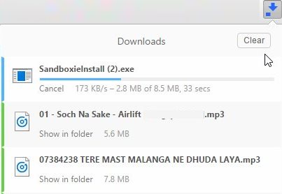 Clicking on the icon will open up all the downloaded files in a small window. There you would also get an option to clear out the list of downloaded files along with an option to see all the downloaded files in the downloads folder.