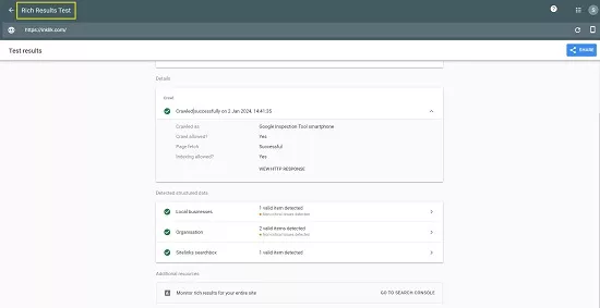 Rich Results and Schema.org Tester Plugin is a free Google Chrome Extension that enables you to validate the Schema Markup of your page directly in your browser. Whether your objective is attaining flawless structured data or excelling in Google’s rich results, this extension functions as a great solution.