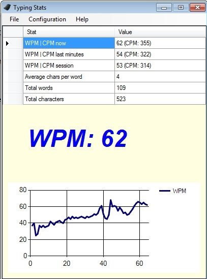 Typing Stats has one shortcoming that it does not shows history. So, you cannot store or compare your typing speed over days; you can just see typing speed for the current session. Nevertheless, it is good enough to get a good idea of your typing speed, and is frankly more natural than other typing speed test software.