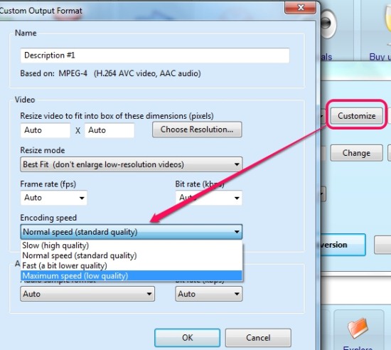 Apart from this, if you want to increase the conversion speed, then after selecting the output process, you can tap on Customize button to access Encoding speed option.