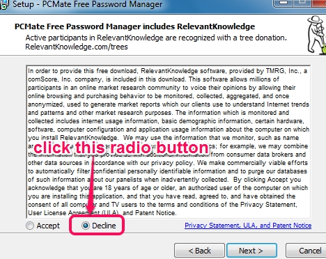 Install PCMate Free Password Manager to your PC. You can find its download link available at the end of this review. Its installation is ad-supported and an extra tool will be offered to you. You can skip its installation by clicking on Decline button.