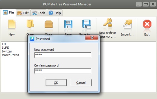 PCMate Free Password Manager- file option