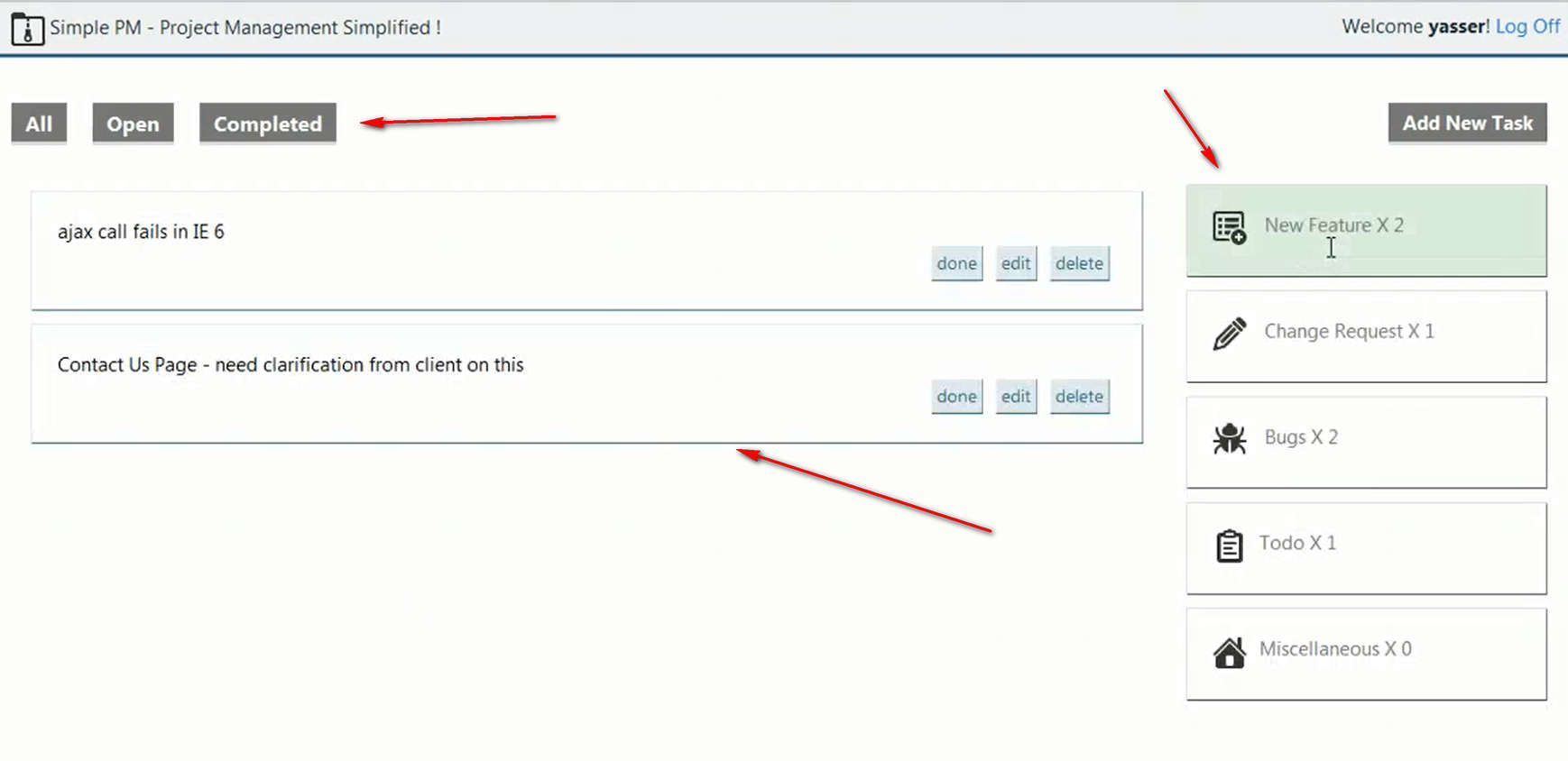 Add new task by entering its name and then selecting the category of where it’s gonna be saved. Once that you complete the task, while you’re in the task list view, click on Done, to mark the task complete, and little by little the entire project will be completed,