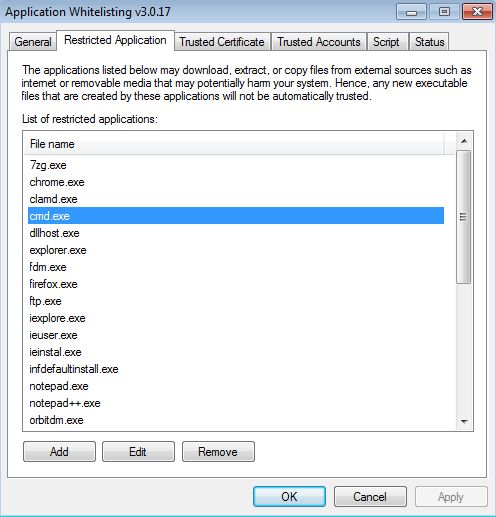 • Trusted accounts: only allow certain computer users to modify whitelist