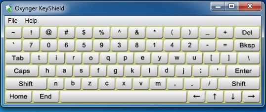 We said only significantly decrease because when fighting against malicious software there’s really no such thing as completely safe. Oxynger KeyShield keyboard allows you to bypass physical keyboards which are far more susceptible to being tracked by keyloggers. This free virtual keyboard is very simple, you can’t change its layout to different language or any other option for that matter. They only thing that you get is what you see on the image below.