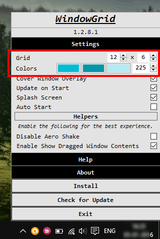If you want to customize the grid, then right-click its tray icon to explore the available options. After this, you can set the number of columns and rows for your custom grid. You can also set the grid color if you want.