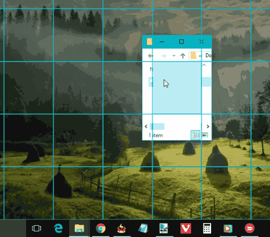 Now, try to add a folder or application to a grid. To do so, you need to: Move the mouse cursor over the Title Bar of Folder/application + Press and hold the right button + and press and hold the left mouse button. After this, try to move the folder/application window. You will notice that grid with default columns and rows is visible to you. See the screenshot below: