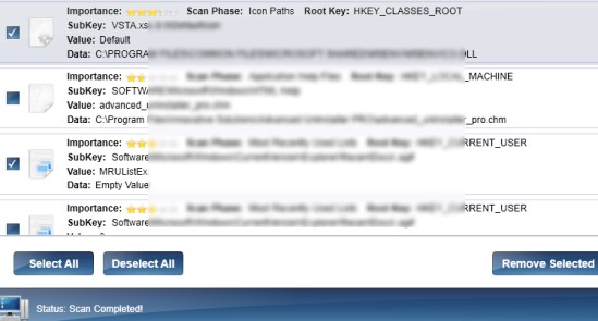• Performs deep registry scan including system help files, MRU lists, control scan, startup entries, virtual devices and more.