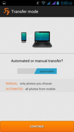 After creating an account, open android interface of Fylet, and you need to select a mode to transfer photos. Automatic and manual mode to transfer photos are available. If you choose automatic mode, then all photos & videos available on your phone gallery will be transferred automatically to PC.
