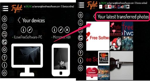Fylet’s PC interface is really beautiful where it provides a sidebar to see the connected devices and latest transferred photos.