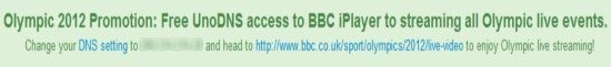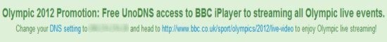 You can now watch London Olympics 2012 Live in any country. UnoDNS makes it possible to watch live London Olympics 2012 on your Windows, Mac, and Linux operating system, sitting in any country of the world. UnoDNS works by changing DNS settings of your computer. UnoDNS provides a unique DNS address which you have to run with the current DNS settings of your computer. All these is required because Live London Olympics 2012 is not available in every country. But changing DNS settings of your computer makes it possible to watch live London Olympics 2012.