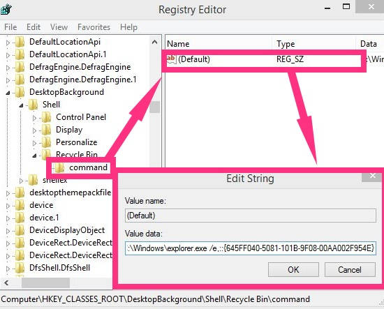 To remove the Recycle Bin, from Context Menu, simply delete the Recycle Bin key that you have created in Registry Editor.