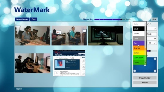 Besides that, you can choose the placement of the watermark, change the size, color, and opacity of the watermark. The best thing about this Windows 8 watermark app is it gives you option to choose different watermark for different photos, and apply different watermark properties for different watermarks and start watermarking photos in batches.