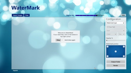 This Windows 8 digital watermark app is very easy to work with. It has got good UI. All the buttons are pretty much self explanatory. I liked the fact that in case, if you need any help for using the app, there’s this Help button on almost top right side of the screen. Click on it and you’ll get the step by step instructions with good graphics (boundary marks).