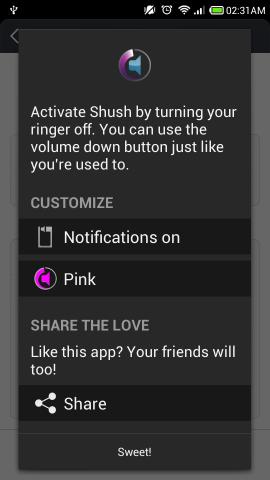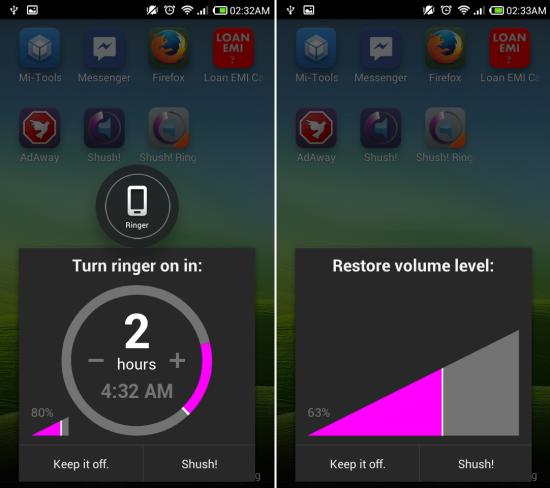 Shush! for Android is a free app for Android devices which lets you set the duration of time for which you would like to keep your phone on silent. After the set duration of time, the phone will be automatically un-muted and the sound will be restored, so that you don’t end up missing important calls or notifications.
