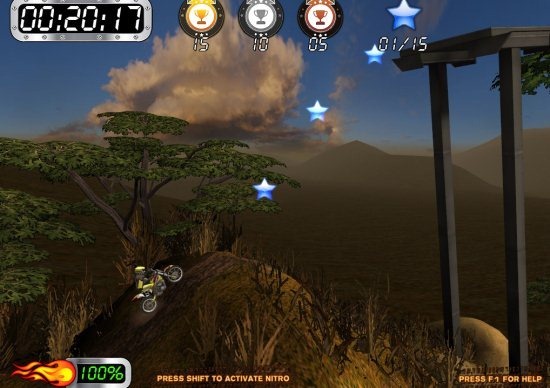 Super Motocross Africa game has bikes filled with nitrous cylinders. So, go zoom into the air with full speed and win medals. Complete stages in time specified to earn: Gold, Silver, or Bronze medals. Unlock later stages and bikes by completing races in time. A special mode is available called Star collection mode; where you have to collect stars. So, try this different kind of bike racing game on your Computer.