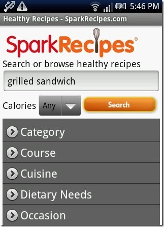 Healthy Recipes – SparkRecipes is a free recipe app for Android which focuses on providing healthy recipes. The app provides all the recipes category wise on Android. You can easily tap on any category of your choice and know the recipe of any particular dish. Along with ingredients of the recipe, the app also provides the direction to cook the dish, and the nutrition information of the dish you are preparing. The app even allows you to add the dish to favorites, share it, and view the recipe online. You can filter the category according calorie per serving. In short, the recipe app is great and simple to use if you are calorie conscious, and love to cook healthy dishes.