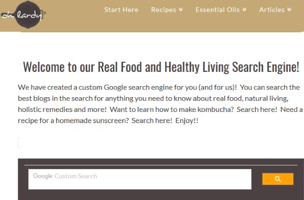 ohlardy.com is a nice search engine for food. You can see it search engine page in the screenshot above. The entire page just has some text and then a search box to search for any recipe. In the search box you can enter any dish name, or name of ingredients, and press the search button. The search would be conducted and appropriate results would be shown to you. For example, I searched for salad in the box and below are the results which were shown to me.
