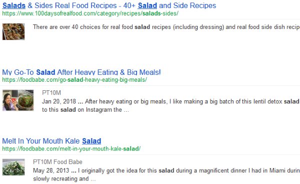 There were various links which appeared over the search box as can be seen. All the links had different salad recipes in them. You can go through the results and you can click on any link which you like. The link will take you to that particular recipe page.
