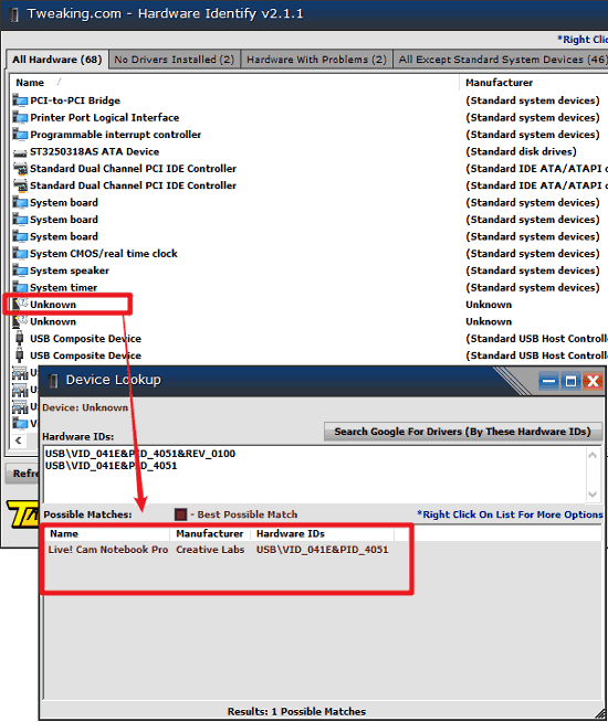 Unknown device Identifier is a free software to identify unknown devices on your PC. The software is very simple to use and can easily find the details about the unknown device. It scans your PC to detect all the hardware and then list them. But, the software works differently as it doesn’t categorize the unknown devices but adds the device in the list with its name. So, you will have to manually identify it, if you know what kind of device you have inserted in your PC. For example, I have an old webcam from Creative labs and the software has listed its name in the result, rather than categorizing in the separate list. Additionally, you can search for the drivers for the device by searching on Google. Also, the software allows you to export the device list to a file.