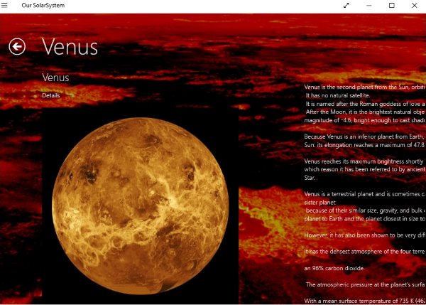 The solar system apps all give you vast information about each of the planets in it. Some of them show you real time model, the rotation and revolution speed of the planets, etc. Some apps also cover some fun facts about the planets. So lets go ahead and look at the free Windows 10 solar system apps to learn about planets below.