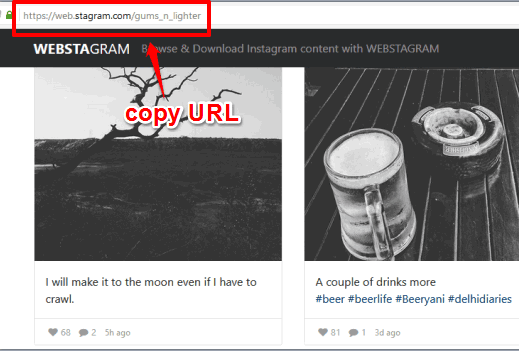Step 2: Now the service will show the photos of that particular Instagram user. You don’t have to browse photos. Simply copy the URL available in the address bar.