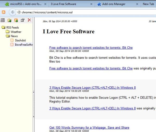 Here’s a list of 5 RSS feed reading addons for Firefox which you can use to more easily manage and read RSS feed updates from your favorite websites. Keeping track of what’s going on on the web, staying in the loop about all the new articles, news and updates that websites put up isn’t easy, because there’s a lot of content that needs to be weeded out. RSS feeds try to bring some order into the chaos, and having RSS feed addons in Firefox makes things that much easier.