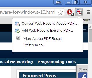 To convert a web page just tap on the top right corner icon and select the appropriate option. Small drawback to using this extension is that it requires Adobe Acrobat installed, but if you want PDF made with Adobe’s own extension, you’ll need to install Adobe Acrobat Reader.