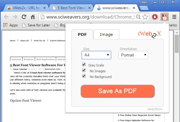 It lets you select paper size, orientation, web page can be converted to gray scale to save color ink (should you decide to print the document), and lastly it’s possible to remove images and background. Note that iWeb2x doesn’t beautify formatting of the created PDF document at all, like Print Friendly does, so the end result looks a bit disappointing if you remove images and background.