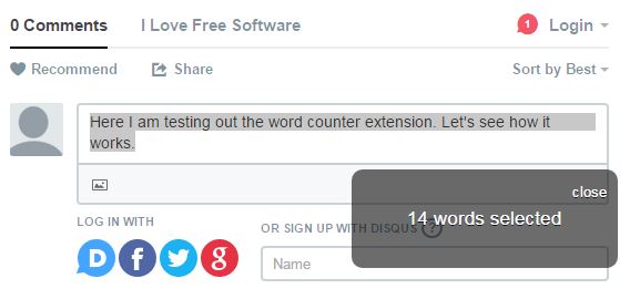 You can see what I mean by looking at the image above. Once you make a selection of a chunk of text from a web page, word counter is automatically added to the address bar at the top with the number of words in the selected text. Simple, efficient and non-intrusive.