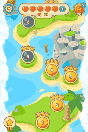 You move on from level to level collecting stars and coins. The coins will help you buy extra moves if you run out of them. You get 5 lives to start with. Each failed attempt to clear a level takes away one life. You have the option of connecting your Facebook account with this game. This way you can see if your friends are playing the same game and you can then compete with them. Also, your friends come in handy when you run out of lives.