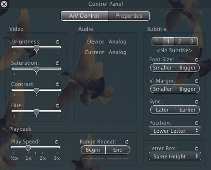 You can control the video and audio playback with the control panel as shown below. Here you can control and manage Brightness, Saturation, Contrast. Hue, Play Speed etc. Best part about this all this can be done from a single control panel interface.