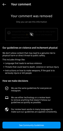 Go to the Account Status section and here you will see all the rules that you have violated so far. If you posted some photo or a comment that violated community rules then it will show you that. What decision Instagram moderation on your reported content will also be shown here.