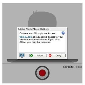 - Click the “Allow” button in the confirmation popup, so that this service access your webcam and microphone.