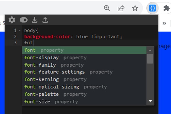 3. Type / Paste the CSS code and it will be injected automatically into the webpage. For example, you can try and change the style of current website such as the background color, fonts, etc.