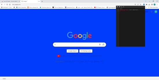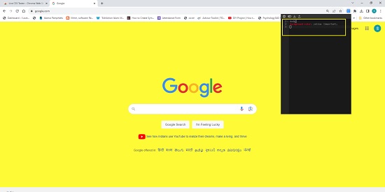 4. The output will be available on the screen immediately in real time. Look at the screenshots below where we used Live CSS Tester to change the background color of a web page.