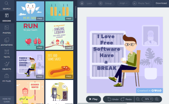 In this post, you will learn about the animation maker by Crello to create videos with animated objects, animated backgrounds, and pre-defined animated templates. Crello is actually one of the best free online social media graphic designer which you can use to create stunning designs with photos, text, etc. Now, they have added a built-in animation maker to the native editor. You can use it to create amazing videos by using tons of pre-defined animated templates, objects, and backgrounds.