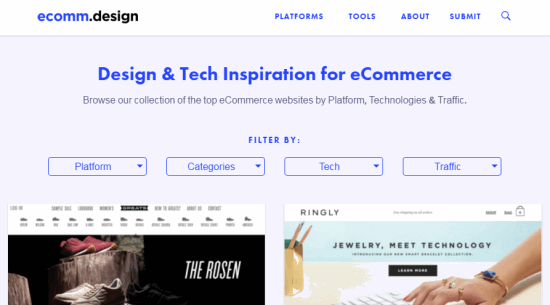 ecomm.design is a free website that provides various websites for inspiration in UX (user experience), listed by tech based and design based constraints. It has a vault of beautiful and successful websites that will definitely make other ecommerce websites rethink their design and ecommerce platform. Additionally, ecomm.design also lists the services that provide these websites support in advertising, marketing, testing, etc so you get a feel for their business model.