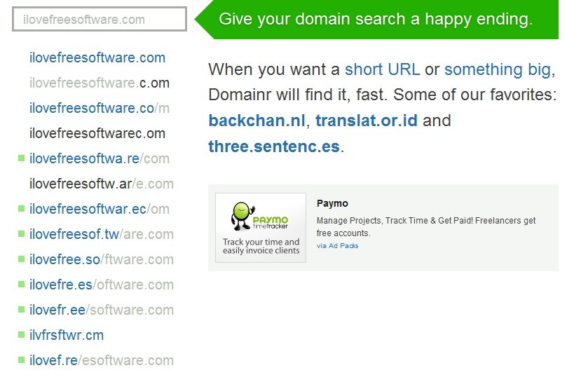 Domai.nr is quite simple to use. Just go to the website, and enter your domain name, and it will immediately give short domain suggestions. To register a domain, you can just click on name of that, and Domai.nr will show you the domain name registrars with whom you can register that domain name.