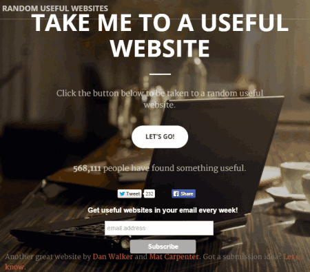 Random Useful Websites is a handy website, and its name clearly suggests what it does. It can help you discover some good websites that you might haven’t come across till now. It is one of the easiest websites where you don’t have to do anything, except a few mouse clicks.
