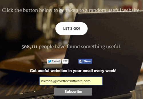 That’s all this website does. I’m pretty sure you will find some good websites. If you want, you can also subscribe to its newsletter to get some good random websites in your Inbox every week.