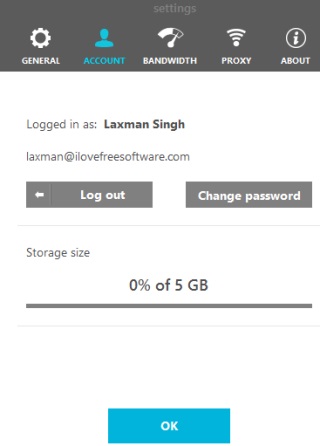Download its application file on PC and install it. It is around 10 MB in size and link for its download is available at the end of this review. After installation, sign up by creating a free account, and you will receive 5 GB space immediately.