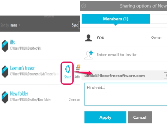 tresorit is a free cloud storage service that provides 5GB free online storage space to backup of important data. This free storage space can grow upto 16 GB by inviting friends and installing it to mobile devices. You will be able to add multiple folders (max. 5 folders, known as tresor) on its interface and can create automatic online backup of those folders with automatic syncing. Data uploaded by you remains private to you, as backup of data is stored in encrypted form.
