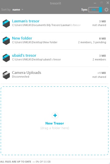 On its interface, your account name’s tresor will be created by default, which you can use to add items that you want to backup securely. To create your own tresor, just use New Tresor option or simply drag n drop a folder from PC (not more than 0.5 GB size) to its interface. In the similar way, you can add multiple folders (up to 5 folders).