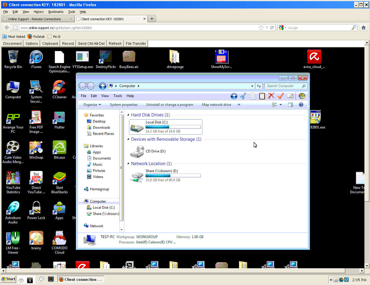Connection is established and you can start offering remote assistance to the client PC. Online Support is perfect for people who need a quick and simple way of connecting to somebody else’s computer in order to either help out with a problem or to just show the other person how something is done. For up to 10 connections Online Support is free, try it now and see how good it really is, free service.
