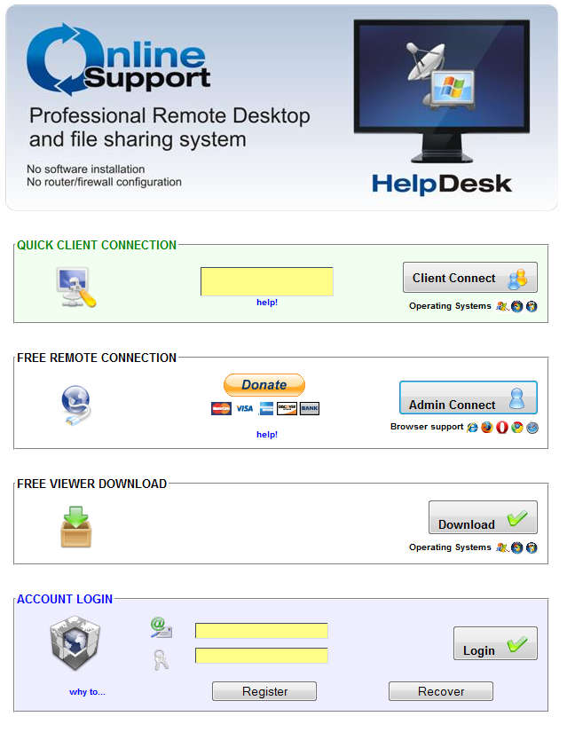 Online Support is a free remote administration tool which doesn’t require any kind of installation, and you also don’t have to perform any kind of router or firewall configuration in order to have a successful remote connection. Online Support requires Java. The viewer application, the one that’s used to connect to the client side is a Java web browser app, so make sure to have Java runtime environment installed before setting up Online Support.