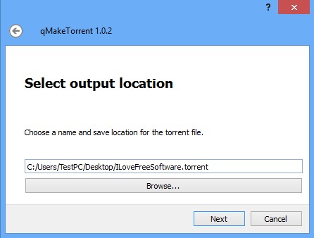In second step you just need to select where the output torrent file or files, if you’ve selected batch conversion, is going to be saved.