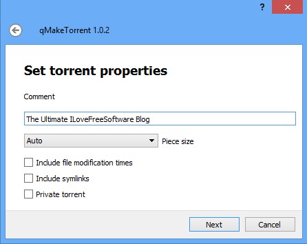 Comments, piece size, symlinks, torrent privacy and modification times can all be setup in the fourth step of the setup. Go through all the options and when you’re ready click Next to reach the last and final step.